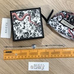 Made In Italy Sterling Silver Blue Enamel Heart Bracelet. This trendy GUCCI bracelet is designed in 925 sterling silver. It features an intricately engraved light blue heart pendant with an interlocking G symbol attached to a woven link chain.